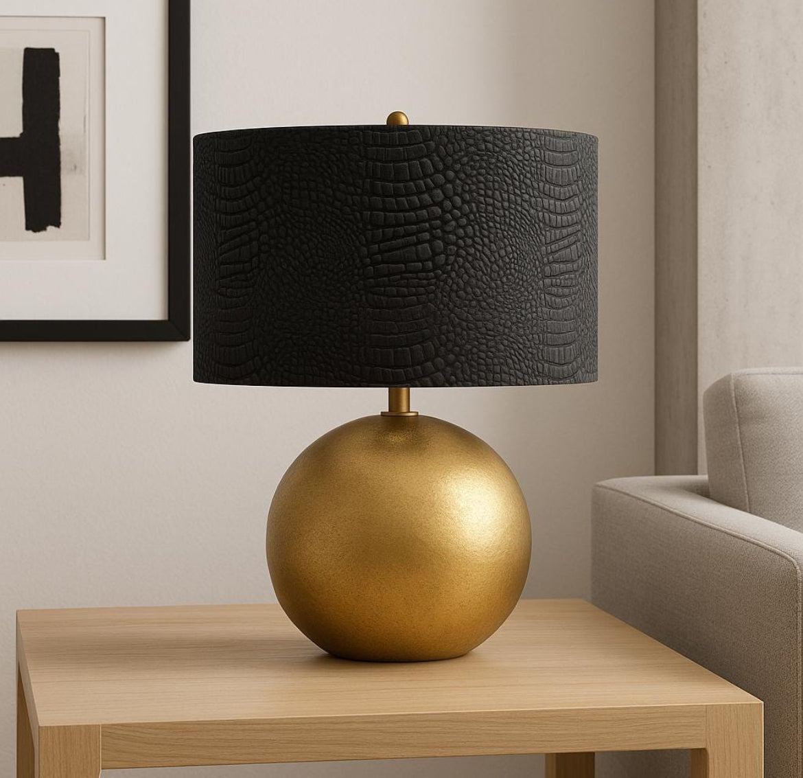 Elevate your lighting with this striking black faux–crocodile drum lampshade. Designed with a deeply textured, high-definition reptile pattern, it brings bold sophistication and modern edge to any space. The rich matte-black finish creates dramatic contrast while the clean drum silhouette keeps the look contemporary and refined. Perfect for adding depth, texture, and a touch of luxury to table lamps, floor lamps, or statement lighting pieces.